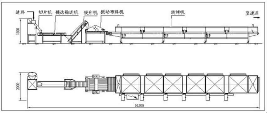 SK型蔬菜燒烤生產(chǎn)線由切片機、挑選輸送機、提升機、振動布料機、燒烤機、振動分級機等組成,可用于茄子, 南瓜, 辣椒,蘑菇,土豆,紅蘿卜,大蒜,蔥,蕃茄,西紅柿等各類蔬菜的燒烤處理。