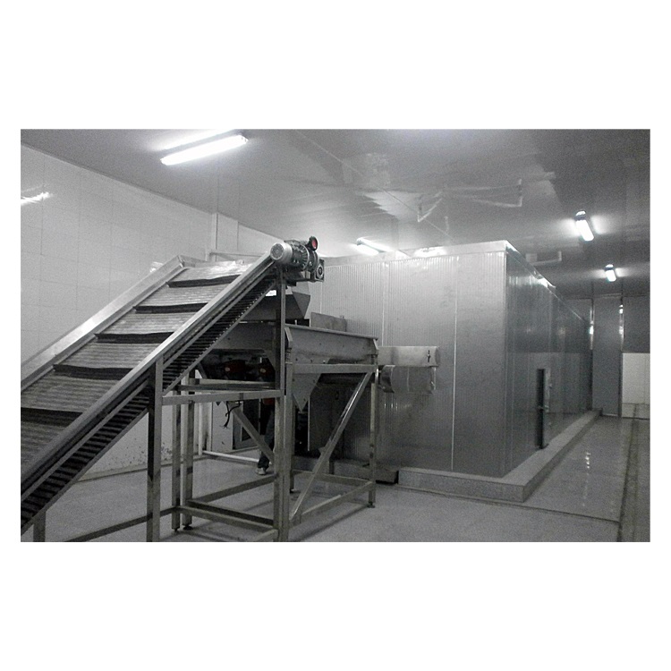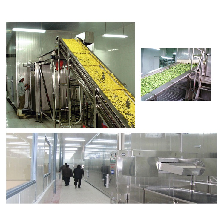 SLD系列新型高效流態(tài)化速凍機是我公司充分吸收國內外的先進技術,揚長避短、 集各家之長,新開發(fā)的新一帶速凍裝置,精湛的加工技術及一流的加工工藝,確保產品在同行中處于領先地位。該機融入最新速凍技術和最新設計理念,采用多項最新流態(tài)化凍結技術,是當前產品性能最卓越,設計最先進的速凍機。該系列速凍裝置是實現果蔬類食品及部分海產品流態(tài)化單體凍結的最佳設備,用風力強勁的離心式風機,凍品在不銹鋼輸送帶上移動,隨著氣流速凍的增加,食品層開始松動;當風壓達到一定數值時,食品顆粒不再保持靜止狀態(tài),部分顆粒懸浮向上,造成床層膨脹,空隙率增大,即形成流化床;在此流化床上受由下而上的強冷風吹浮處在懸浮狀態(tài)下的食品,凍品各面均受到冷風繞流,來實現凍品的快速凍結,形成單體,使被凍的凍品迅速通過冷卻,表層凍結,深層凍結三個階段,從而獲得最高品質的速凍食品。